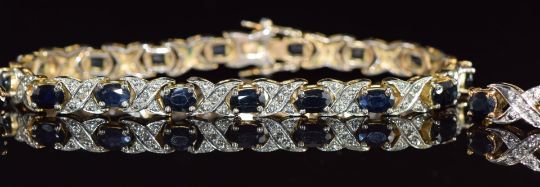 A silver gilt bracelet set with oval cut sapphires, with matching earrings