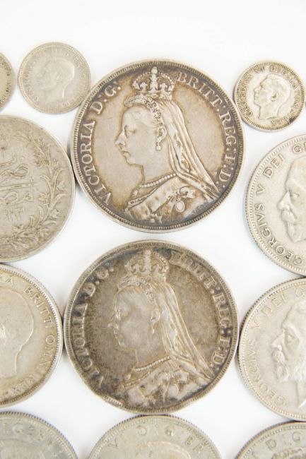 Two Queen Victoria Jubilee crowns and a quantity of further silver coinage