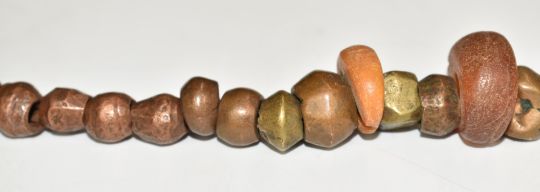 A 19thC beaded amber, bronze and copper necklace, 440g