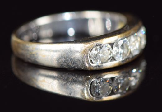 An 18ct white gold ring set with five diamonds, 3.7g, size I