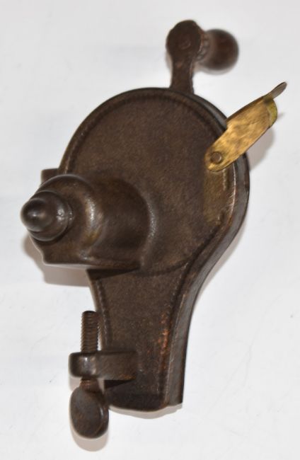 19thC table mounted nutmeg or similar grater, marked 'patented June 7, 1870', height 10cm