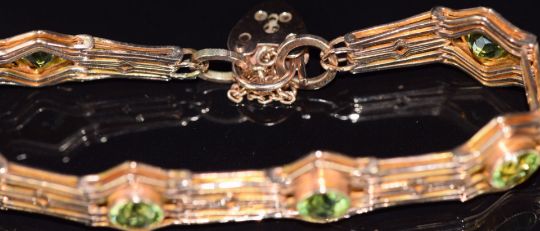 A c1915 9ct gold bracelet set with round cut peridots, 17.6g, 17cm long
