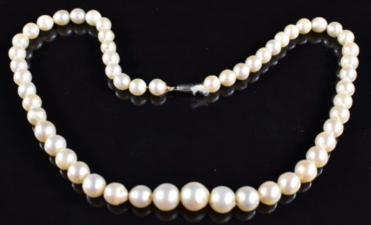 A single strand of cultured pearls with 9ct white gold clasp, in Ciro box, 26g, 38cm