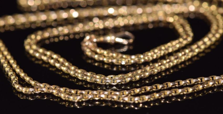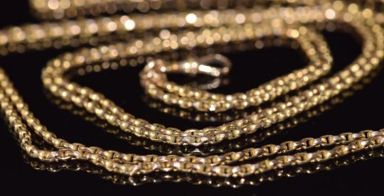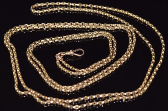 Victorian 15ct gold guard chain made up of oval faceted links, 32g