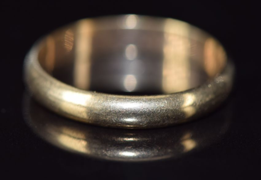 A yellow metal wedding band / ring marked 333, 3.2g, size V
