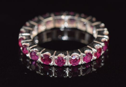 An 18ct white gold eternity ring set with rubies, each approximately 0.1ct, 4.3g, size N