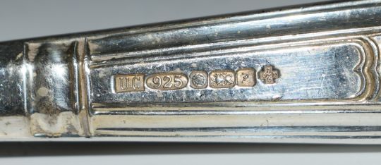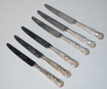 Seven pistol grip hallmarked silver handled knives comprising three 24.5cm and four 21.5cm, various dates and makers