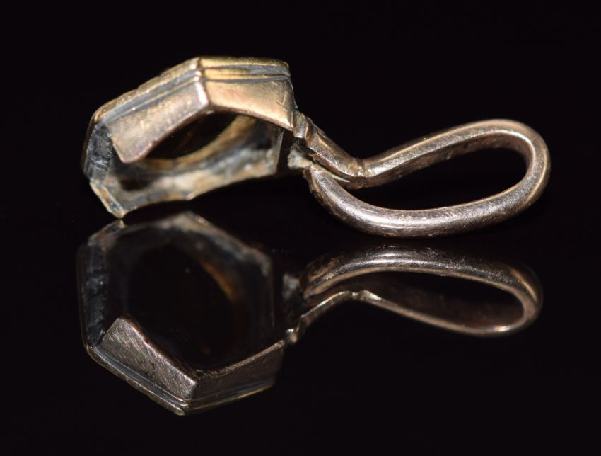 Victorian hexagonal pendant set with blue guilloché enamel and an old cut diamond, 2.9g, 1.2cm
