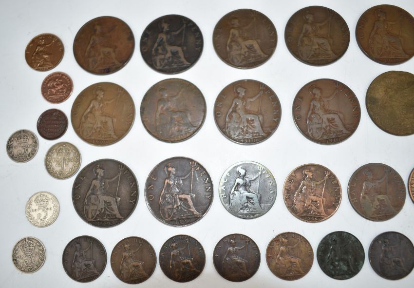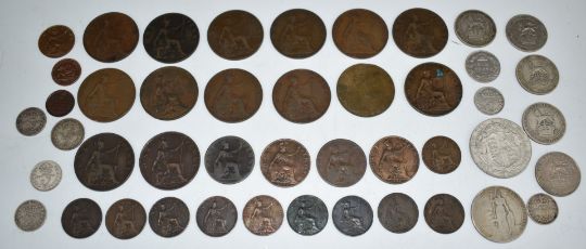 Edward VII 1906 halfcrown VF together with a 1902 shilling VF-EF, 1905 4d and 3d and a collection of further Edward VII bronze and silver coinage
