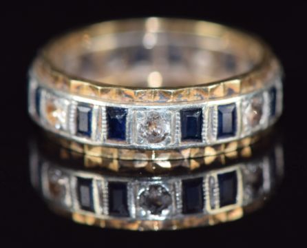 A 9ct gold eternity ring set with sapphires and paste, 4.4g, size M
