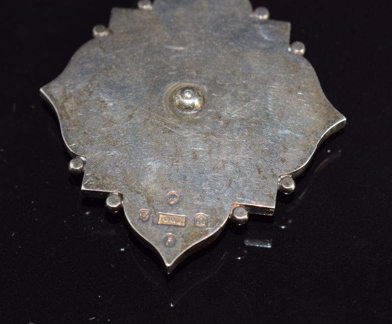 Scottish silver pendant set with blue enamel, depicting Edinburgh crest and 'Nisi Dominus Frustra', 6 x 4.8cm, 56.7g
