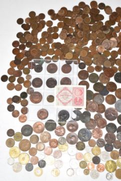An amateur collection of UK copper and bronze coinage, George II onwards, includes some provincial tokens, farthings, Hibernia, a quantity of decimal halfpennies and some overseas