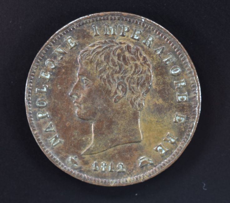 Italian 1812 Kingdom of Napoleon one soldi, Milan mint mark, VF+. Found under floorboards of a cottage which was formerly a 17thC riverside pub