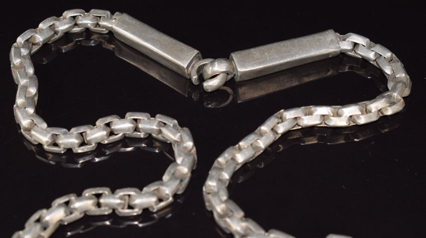 Victorian or earlier silver chain made up of rectangular links, 66cm long, 209g