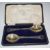 Cased pair of George V hallmarked silver serving spoons with gilt bowls and pierced finials, Birmingham 1920, maker E S Barnsley & Co, length 23cm, weight 155g, the fitted case marked Petersens Limited, Christchurch, NZ