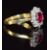 An 18ct gold ring set with a 1ct cushion cut ruby surrounded by ten round brilliant cut diamonds, each approximately 0.1ct, 4.9g, size Q
