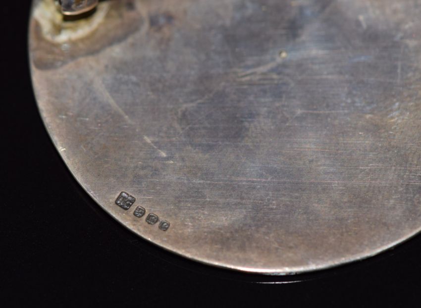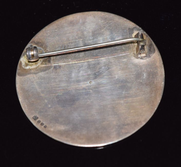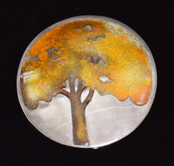 Norman Grant silver brooch set with enamel depicting a tree, Edinburgh 1977, 4.2cm diameter