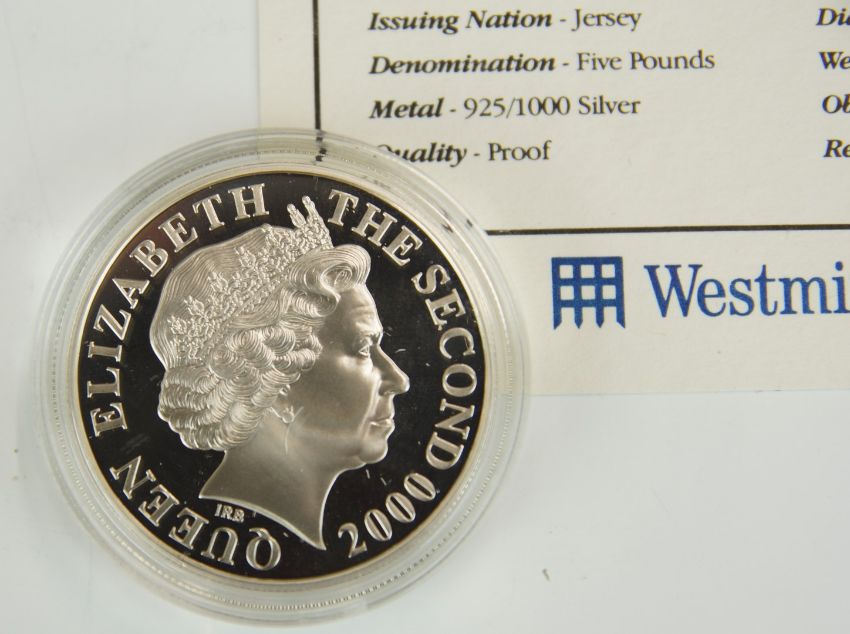 Five various silver proof commemorative crowns, some cased, includes USA World Cup example