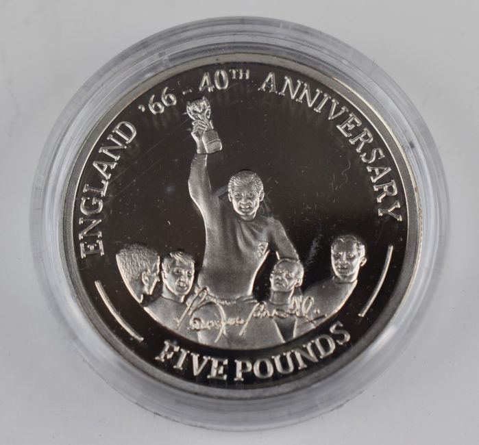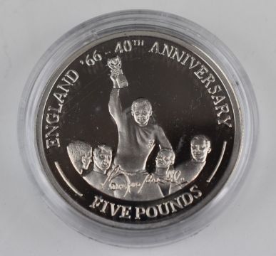 Five Westminster Coins comprising two silver Britannias England World Cup and gold plated silver 'Life and Times of Queen Mother' commemorative crowns, in collector's case, four with certificates