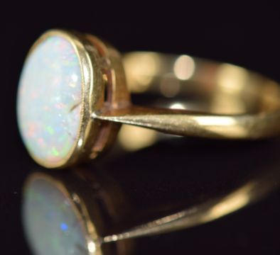 An 18ct gold ring set with an opal cabochon cabochon, 2.7g, size K