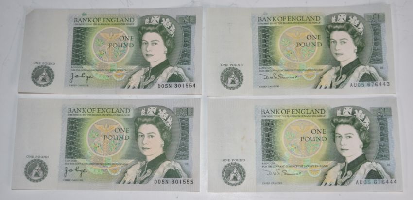 A small collection of UK banknotes to include JB Page £5, LK O'Brien 10 shillings Britannia version, £1 and two consecutive Somerset consecutive pairs