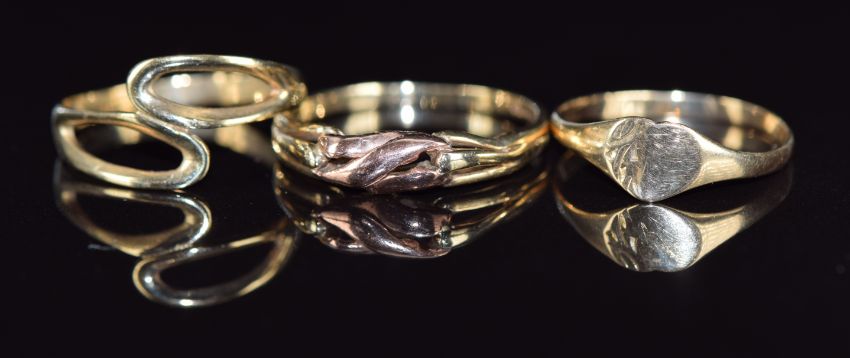 Three 9ct gold rings, 3.8g