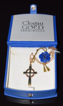 Clogau 9ct gold cross pendant on 9ct gold chain, in original box, 5g
