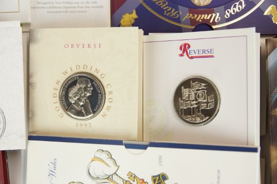 A collection of Royal Mint and other coin souvenir collection packs, Royal family related