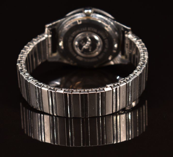Longines gentleman's divers wristwatch with subsidiary seconds dial, blued hands, Arabic numerals, silver dial, stainless steel case, plain bezel, stainless steel case marked to the back 'Swiss Super De Luxe Tropicalized Antimagnetic Stainless Steel' and calibre 13.3 movement, on expanding metal bracelet, case diameter 37mm, serial number 4174464.