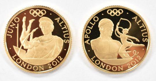 Royal Mint The Gold Series comprising two gold £25 coins, each weighing 8.51g, to commemorate XXX Olympiad, in deluxe fitted case with certificates