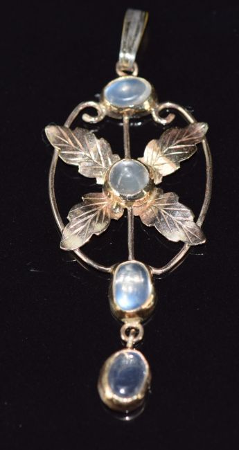 Arts & Crafts pendant set with moonstone cabochons, 2.2g, 4.4cm
