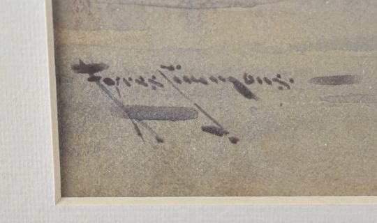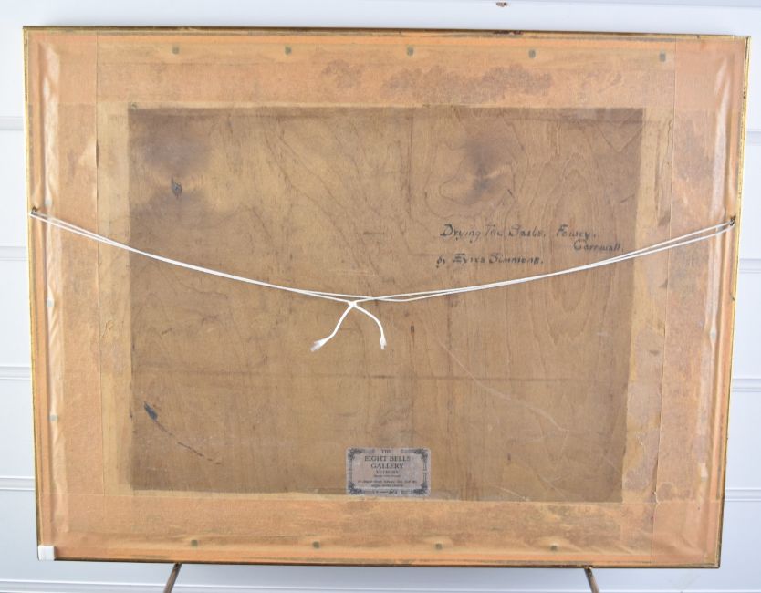 Eyres Simmons (1872-1955) watercolour of ships, "Drying the sails, Fowey Cornwall", signed lower left and titled verso, 27 x 39cm, in gilt frame