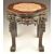 Chinese carved Padauk wood jardinière stand or side table, with inset marble top, beaded edge and lion paw feet, diameter 44cm