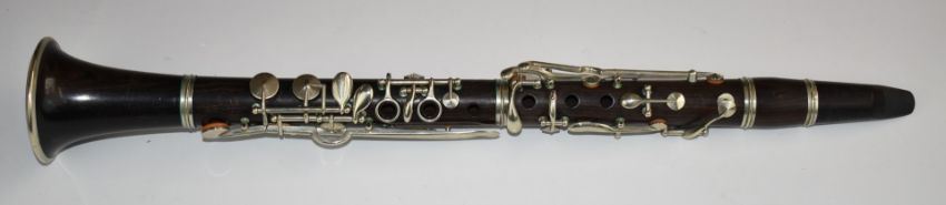 Lefèvre à Paris 19thC rosewood clarinet, in original fitted case, with restoration receipt for £70 from 1999