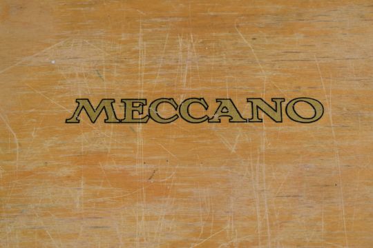 A collection of loose Meccano parts in fitted wooden dealer's box.