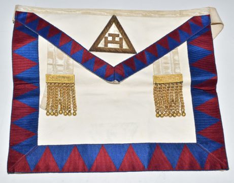 Masonic 9ct gold medal or jewel, weight 8.1g all in and Masonic apron