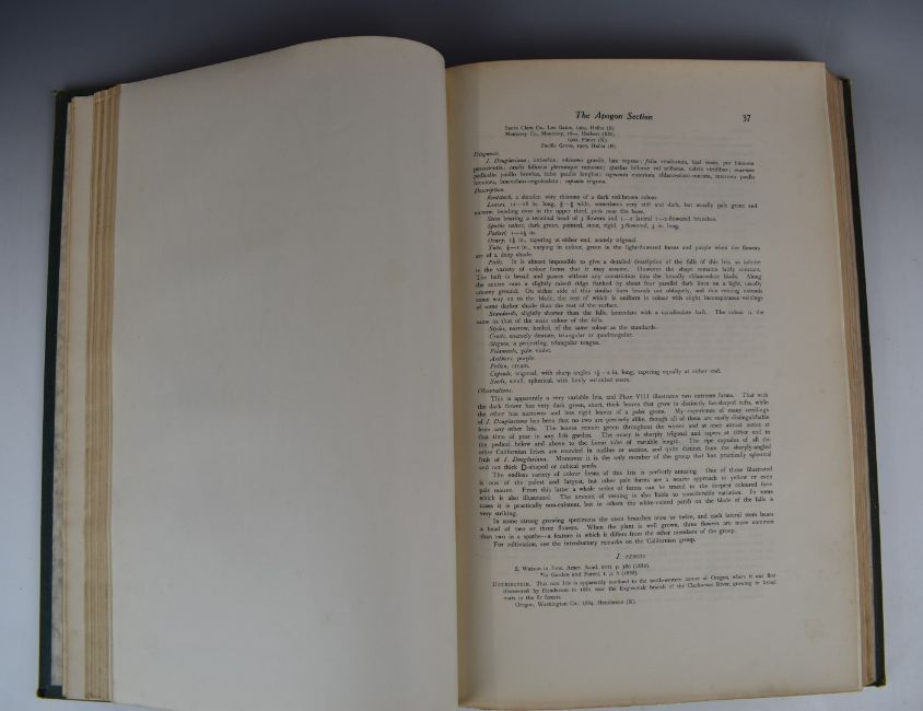 William Rickatson Dykes The Genus Iris with 47 coloured drawings by F.H. Round, one coloured plate of seeds by Miss R.M. Cardew and 30 line drawings by C.W. Johnson, published Cambridge: at the University Press 1913 first edition folio, coloured plates all with protective guards in Morocco backed cloth boards with gilt titles