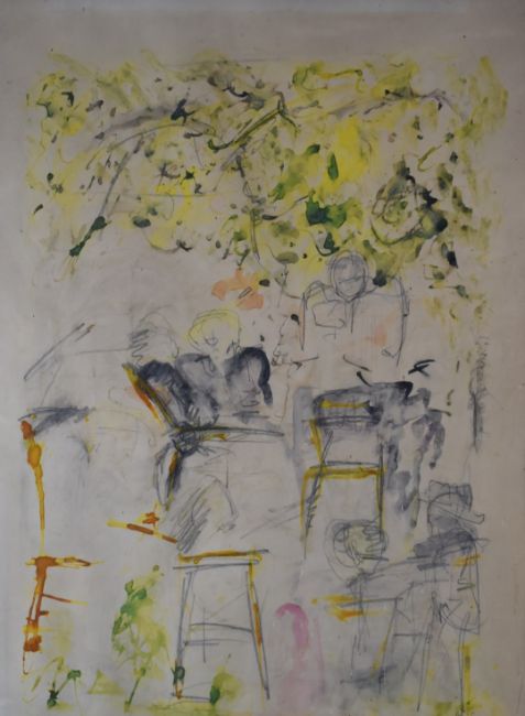 Lorraine Cavanagh (b1955) modern watercolour sketch ' Avignon Cafe', monogramed lower right 60 x 45cm, in stained wood frame