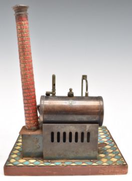 Bing stationary live steam engine  c1910-1920, on wooden tiled base, with slip eccentric reversing and external side valve