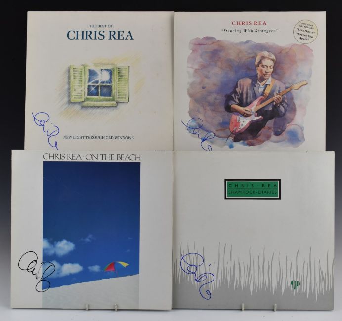 Chris Rea - Four albums comprising Shamrock Diaries, On The Beach, Dancing With Strangers and the Best Of. All appear EX. Signed on front covers