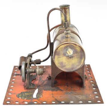 Mamod SE1 stationary live steam engine 1937-1940, with oscillating cylinder, cast frame and disc flywheel