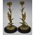 Pair of Victorian brass and black marble novelty candlesticks formed as foliage with frogs jumping up, height 22cm