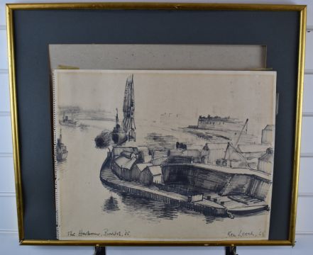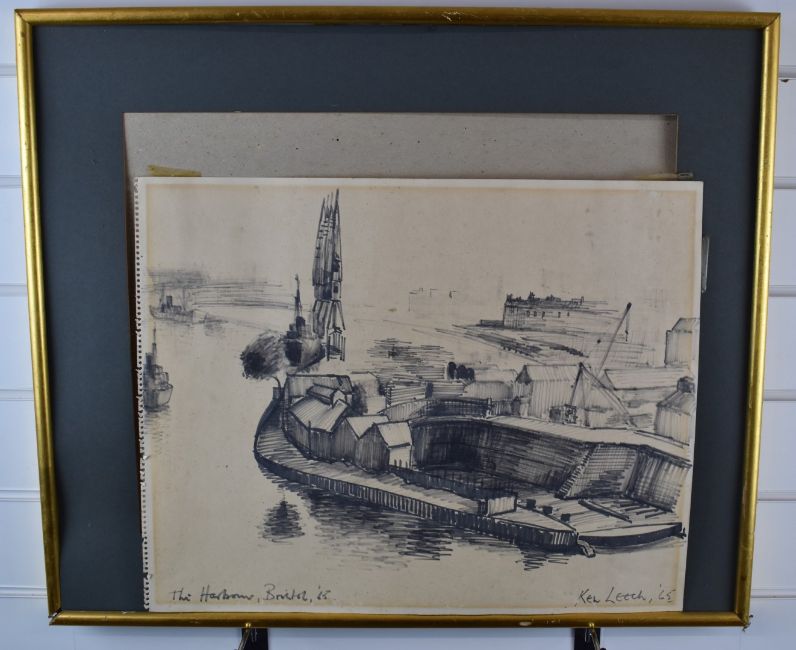 Ken Leech (1915-1990) felt tip on paper 'The Harbour, Bristol '65', signed, titled and dated to lower edge, 39 x 49cm, in gilt frame