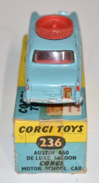 Corgi Toys diecast model Austin A60 De Luxe Saloon Corgi Motor School Car, with pale blue body, red interior, driver and instructor, 236, in original box.