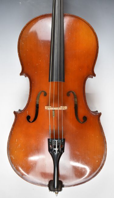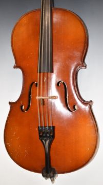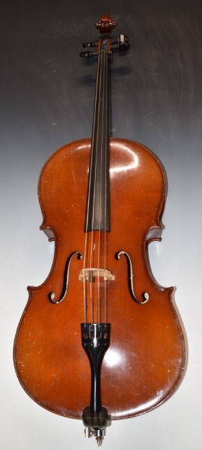 Semmlinger 3/4 size cello, upgraded in 1993 at Beecher Acoustics Ltd including fitting pegs, shooting fingerboard, shaping nut, making new bridge, making and fitting ebony hook saddle and setting up with Schaller tailpiece. Subsequently fitted with Jargar strings in 2000, complete with Hidersine soft case.