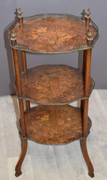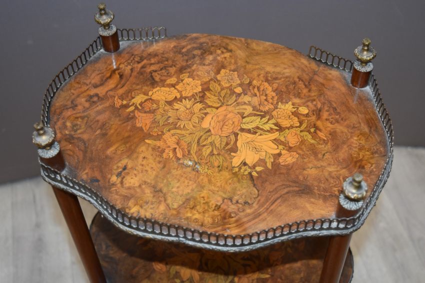 Pair of 19thC French walnut galleried tiered side tables, height 78cm