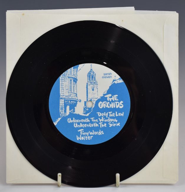 Sarah - The Orchids - Underneath The Window, Underneath The Sink (SARAH11). Record appears EX, blue cover VG, poster