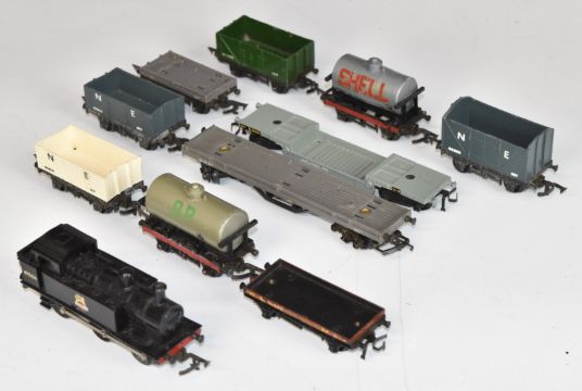 Twenty-four Tri-ang and Hornby Dublo 00 gauge model railway locomotives, wagons, tankers, rolling stock and accessories, some in original boxes.