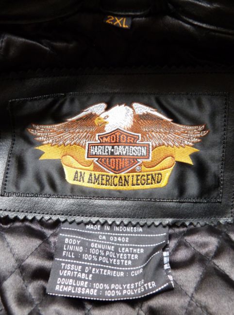 Harley Davidson leather motorcycle jacket with motifs front and back, size XXL