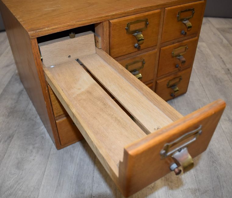 Libraco nine drawer oak filing cabinet, W 50 x D41 x H34cm